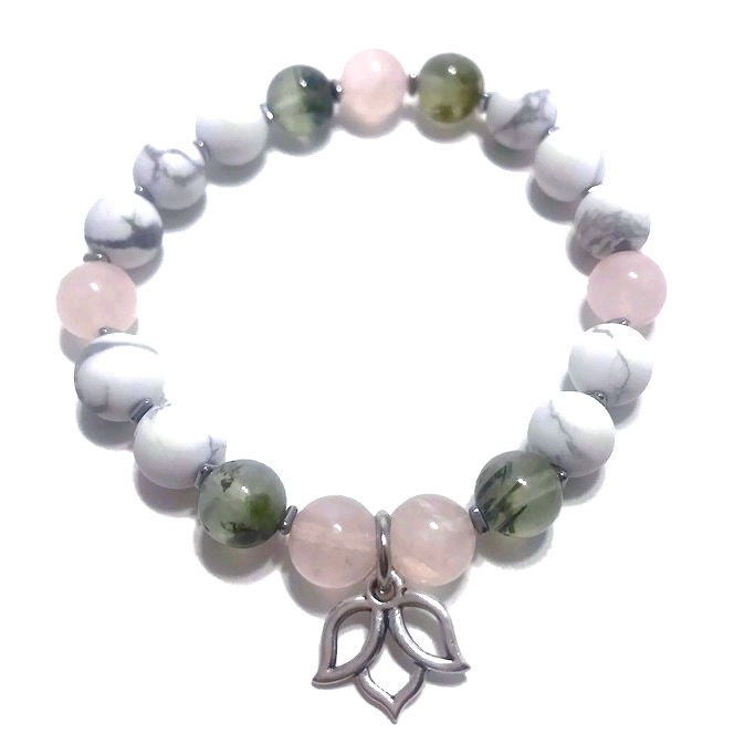 Todas nuestras pulseras están hechas a mano por encargo, utilizando cuentas de piedras preciosas de cristal curativo natural y dijes y botones de peltre o acero inoxidable de alta calidad. Si desea un amuleto diferente al que se muestra en la imagen, simplemente agregue una nota a su pedido indicando qué amuleto le gustaría. O siéntase libre de colaborar con nosotros para crear su propia pulsera única con la energía, la intención o las piedras preciosas que resuenan con usted. Para ver algunos de nuestros pedidos personalizados, haga clic en la pestaña Acerca de arriba y seleccione Pedidos personalizados